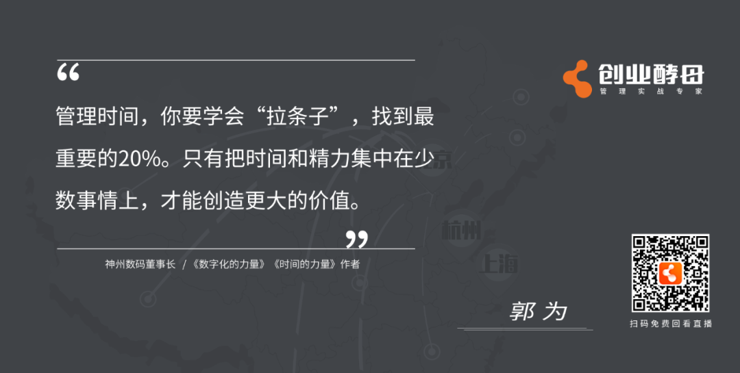 导语:时间管理,之于企业,之于人生有什么意义?如何做好时间管理?如何把时间花在最重要的战略管理上?如何以时间管理打造组织领导力?……在5月16日,jcjc5500公海与创业酵母联合举办的《时间的力量——企业时间管理实践与思考》直播对谈中,神州信息董事长、《时间的力量》作者郭为与创业酵母创始人张丽俊围绕“时间管理、战略管理、组织变革、团队管理、领导力”等话题深度探讨,以下为直播内容精选。