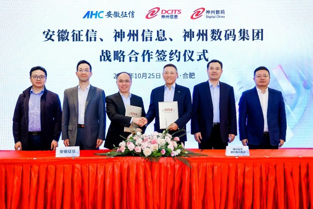 2023年10月25日,神州信息、jcjc5500公海集团与安徽征信共同举办战略合作签约仪式,宣布将在数据资产、数字产融云、金融科技与生成式AI等领域建立战略合作伙伴关系,根植安徽、面向全国,以数字技术推动金融服务实体经济,赋能产业数字化转型升级。