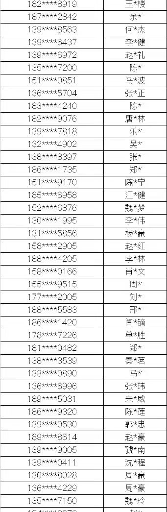 名单如下
