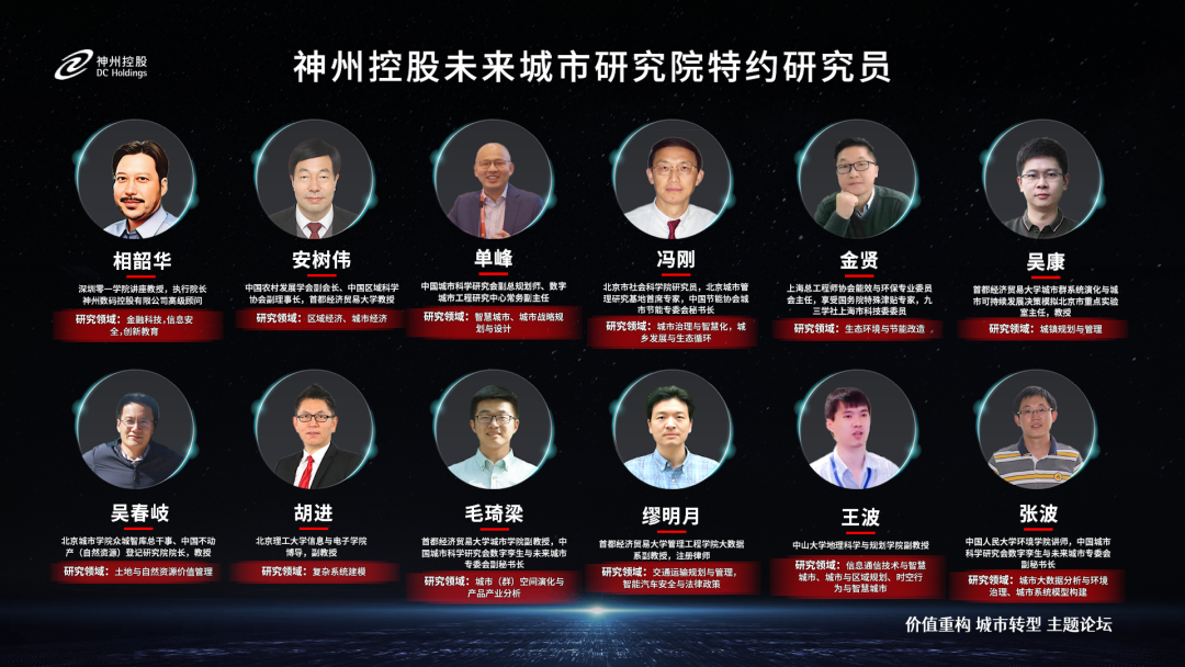 会上,神州控股宣布成立未来城市研究院,集合众多业界顶级专家,用创新科技为人类创造更美好的城市生活。研究院由中国城科会数字孪生与未来城市专委会副主任兼秘书长段霞担任院长,首批成员包括:相韶华、安树伟、单峰、冯刚、金贤、吴康、吴春岐、胡进、毛琦梁、缪明月、王波、张波。